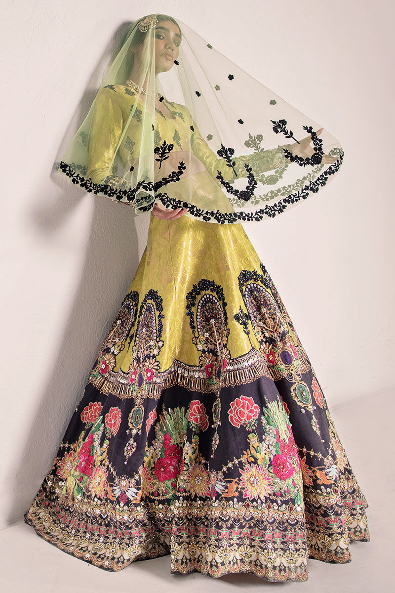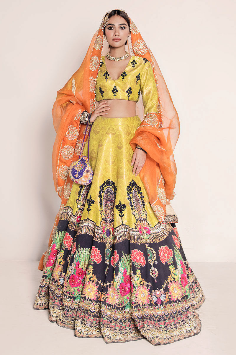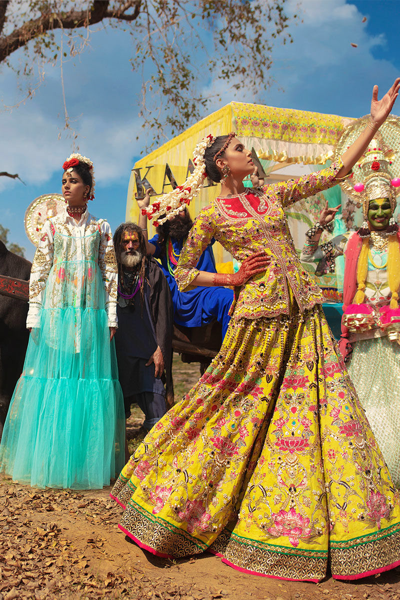 Digital print and embellished lehnga choli for Alixeeshan Theater Studio Kaafla collection